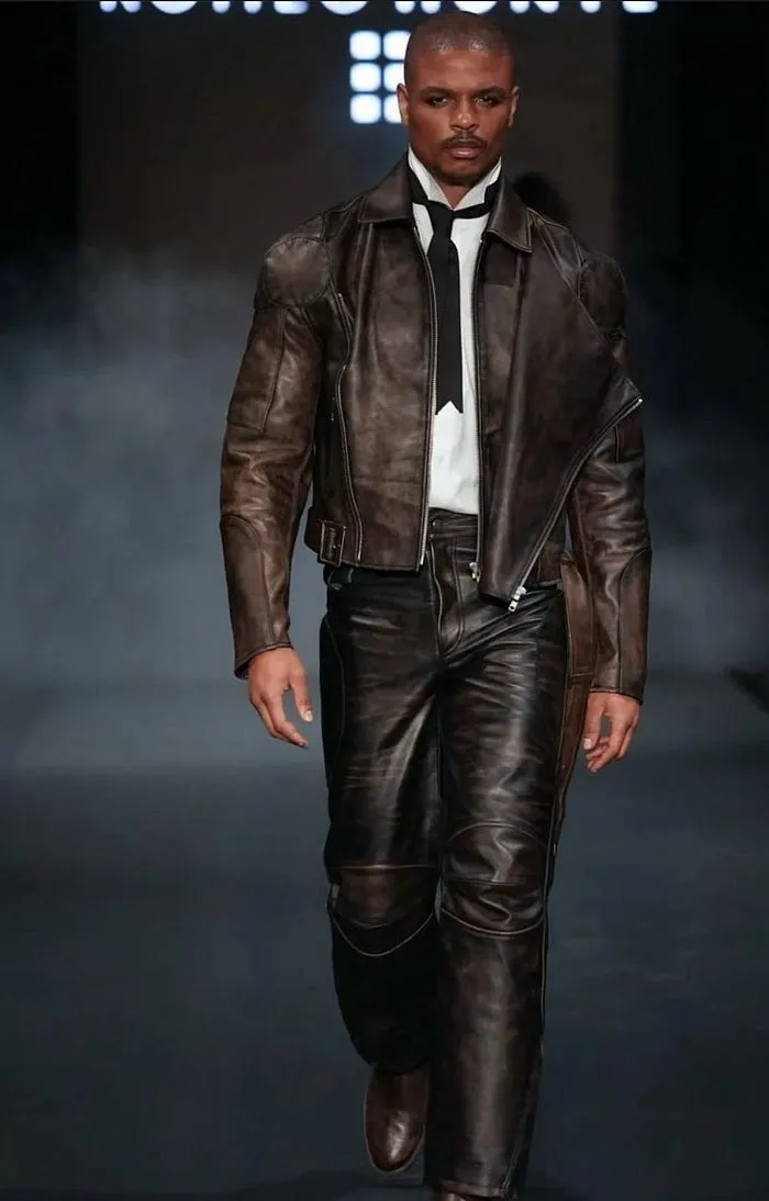 Leather played a central role in the collection’s visual narrative. The material’s structure and presence made it the perfect medium for creating pieces that command attention on the runway.