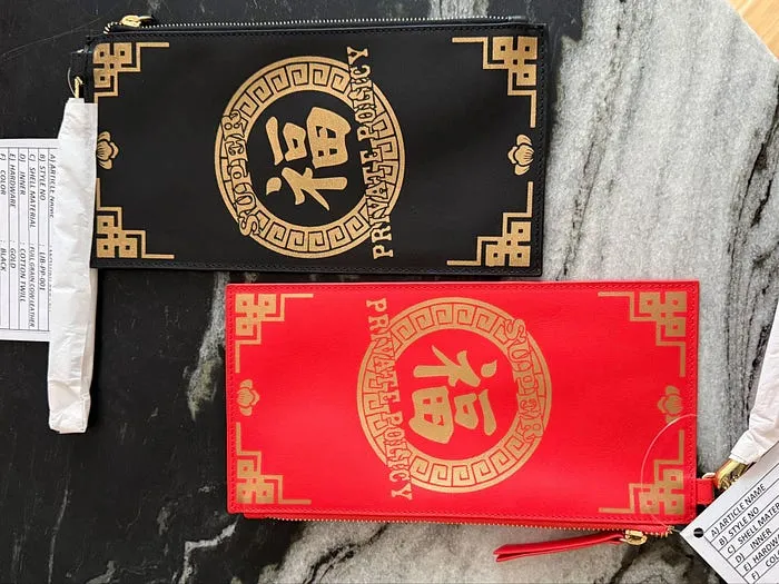 Private Policy is known for weaving identity, heritage, and social dialogue into their collections. For this collaboration, Maryadha supported the development of Hang Bao–inspired wristlet bags, drawing inspiration from the Chinese tradition of gifting Hongbao, red envelopes exchanged during Lunar New Year and other celebrations as symbols of prosperity and good fortune.